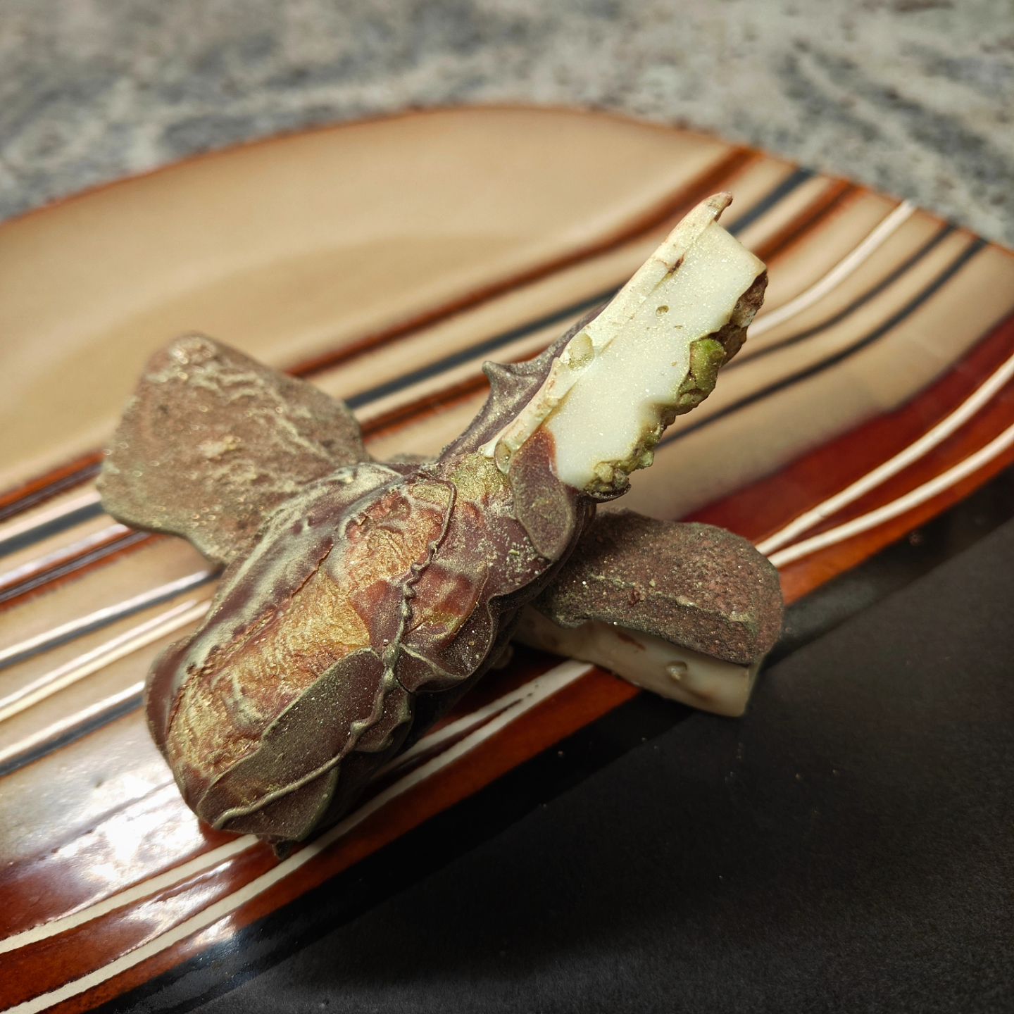 August 22, 2024August 22, 2024What's In My Box Lamb Chop An elegant dish: Apricot pistachio almond nougat wrapped with dried pear, dipped in Itenez Heirloom dark chocolate, and finished with Mexico white […]