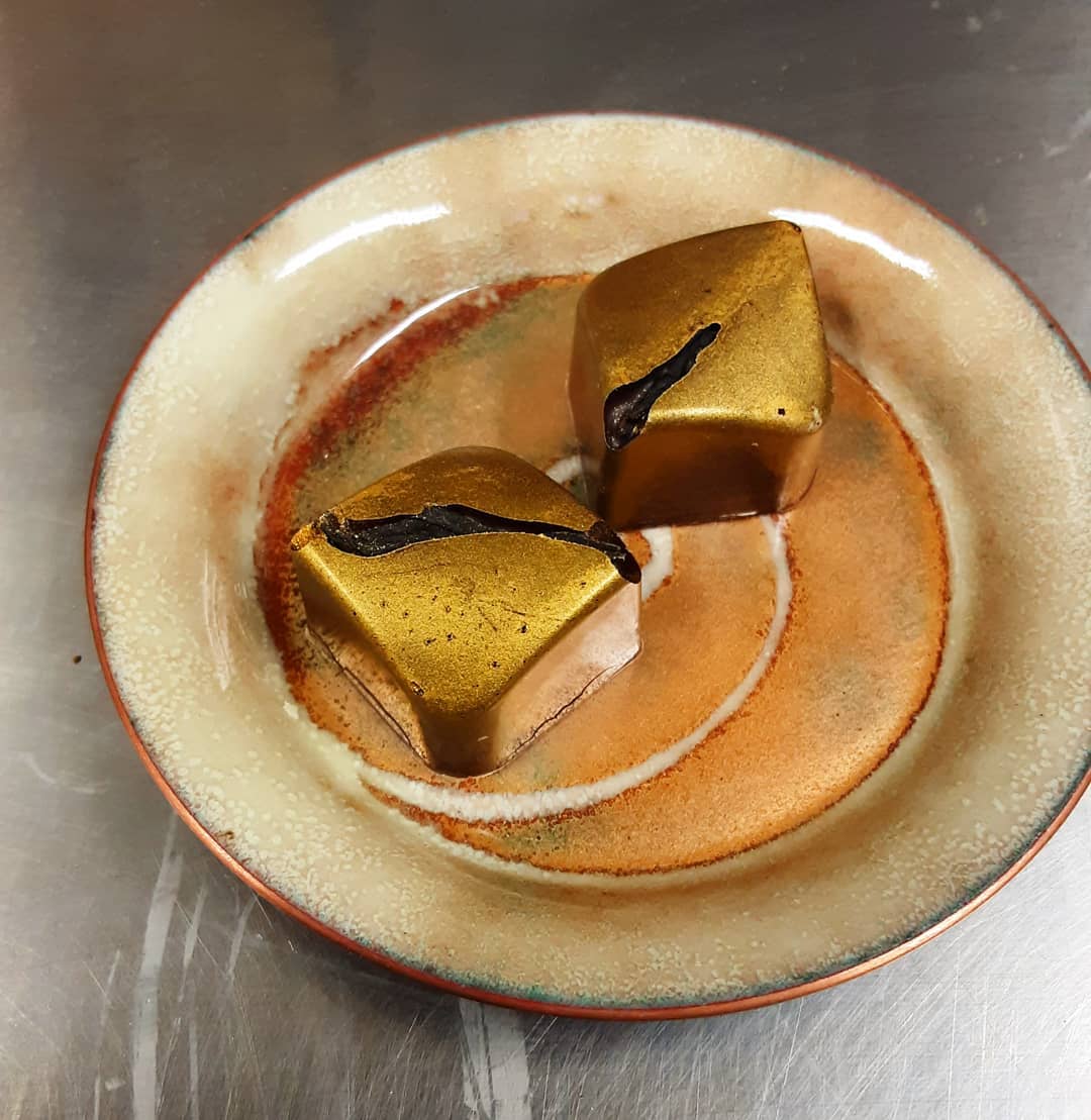 Persimmon Blossom Wuyi Oolong Tea Caramel December 9, 2020December 9, 2020What's In My Box A DELICATE SIP: Persimmon Blossom Phoenix Oolong tea cloud caramel in a dark chocolate shell and a tea leaf peeking through #chocolatier #tea #cloudcaramel @redblossomteacompany Sensational sips, but bitten. Buy Boxes Buy Bars Buy Gifts Classes