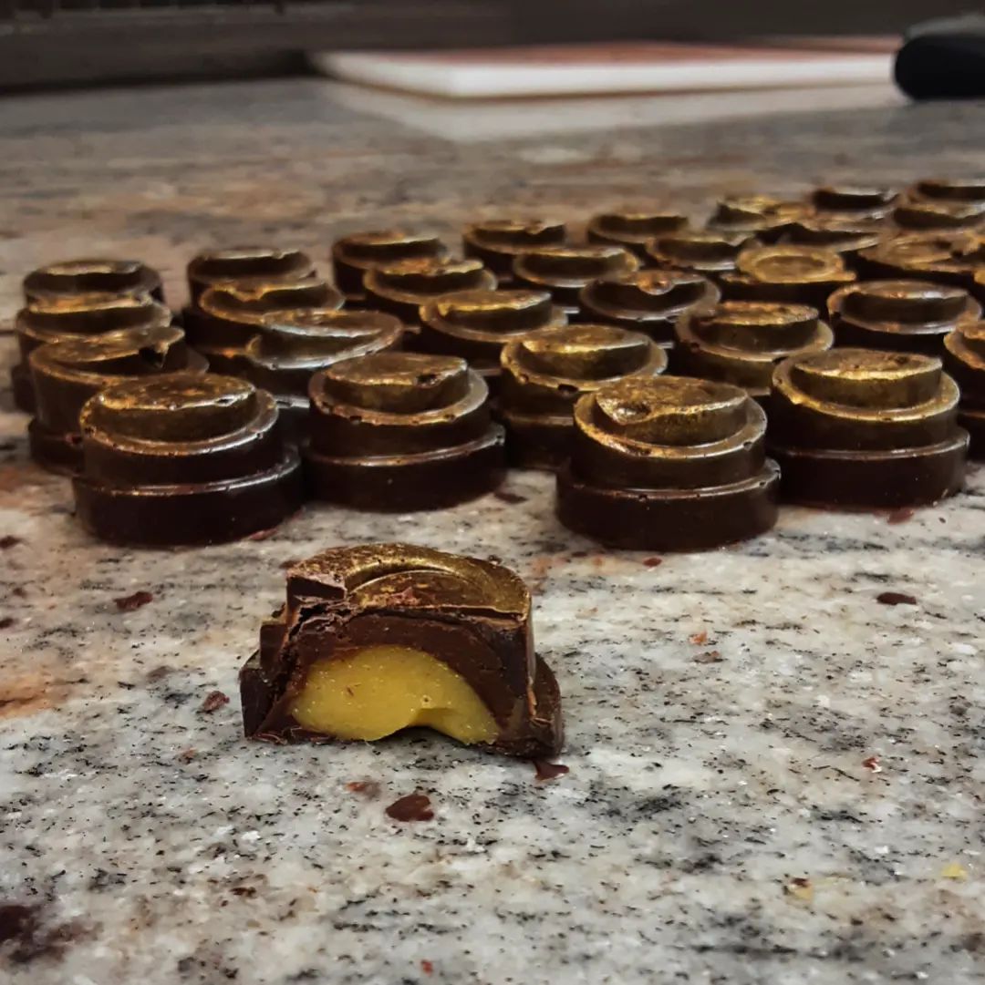 Mango & Yuzu with Pistachio June 29, 2022June 29, 2022What's In My Box A RAY OF SUNSHINE IN THE DARK – vibrant mango-yuzu stabilization encased in Ghana dark lined with pistachio praliné. #chocolatier #dairyfree #containsnuts #lightinthedark Elements fuse into Flavor into sunlight Into darkness. Shop for Chocolate