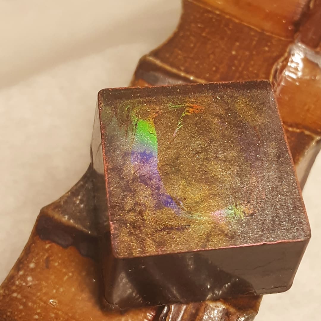 ABOVE THE CANOPY – locally grown Asian pear with star anise and precious Guatemalan White Jade 40% cast in fudgy Bolivian dark chocolate.