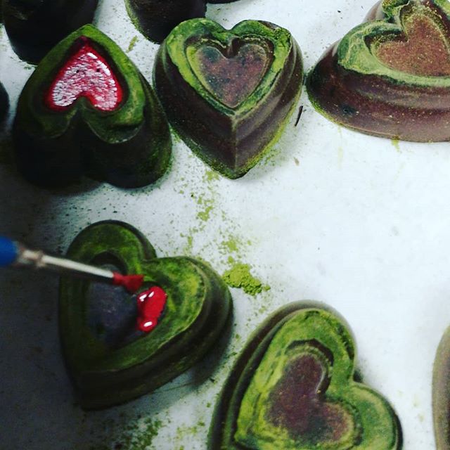 ALL THE WORLD in a piece of chocolate – maple & Tikal cloud caramel in a matcha heart.