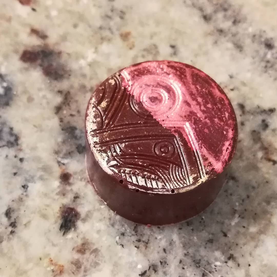 Peach over Spiced Marshmallow July 3, 2020July 3, 2020What's In My Box ALMOST ANOTHER – fresh peach and star anise paté layered over orris root and clove marshmallow, and brightened with Liona chocolate, all in a shell with flavors of passion fruit. #chocolatier #peach @valrhonafrance Buy Boxes Buy Bars Buy Gifts Classes