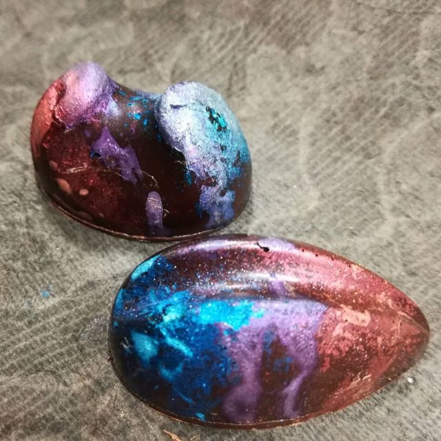 Pomelo, Pineapple, & Honey September 26, 2019September 26, 2019What's In My Box ANDROMEDA STRAIN – Pomelo, pineapple and DJ’s local honey with Indonesian Banglé cast in fudgy Guittard Soleil dark chocolate. @guittardchocolate #chocolatier #chocolateasart #andromeda #galaxy #pomelo