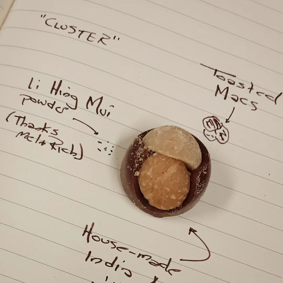 ANOTHER APPROACH – toasted macadamias with zesty Hawaiian Li Hing Mui powder and India “Anamalai” milk chocolate.