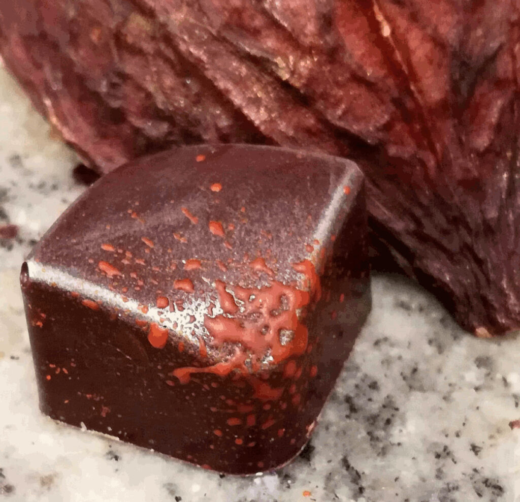 APRICOT POETRY: apricot ganache over dark chocolate caramel with a hint of smokey Indian goraka in a shell of bright Dick-Taylor Belize dark chocolate.