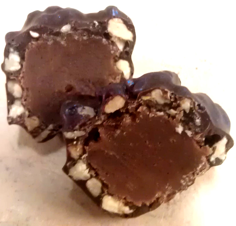 Banana maple ganache rolled in toasted pecans and fudgy Ghana dark chocolate.