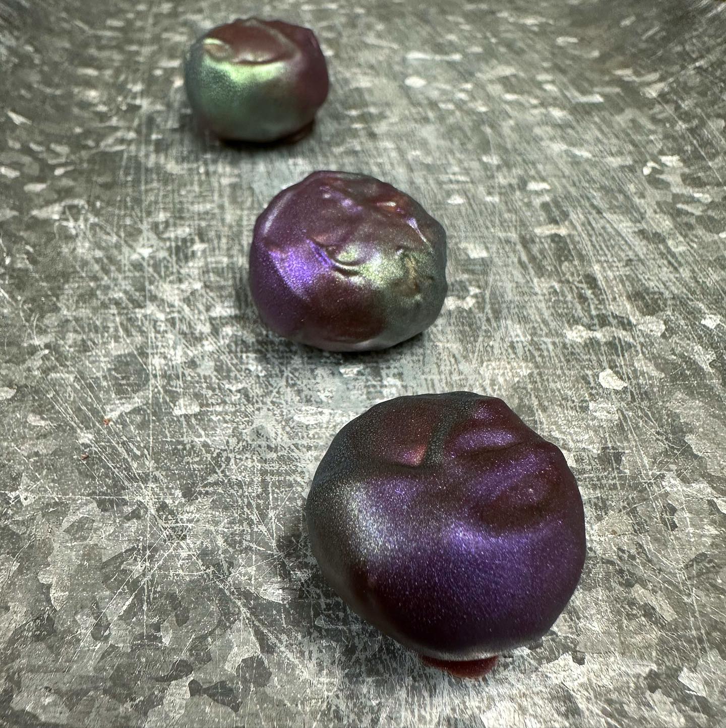 BENEATH THE COLOR GREEN ~ Fig and Quebec nannyberry in a Tanzania/Ecuador dark chocolate blend enrobed in a layer of white chocolate and a layer Mexico/Puerto Rico dark chocolate.