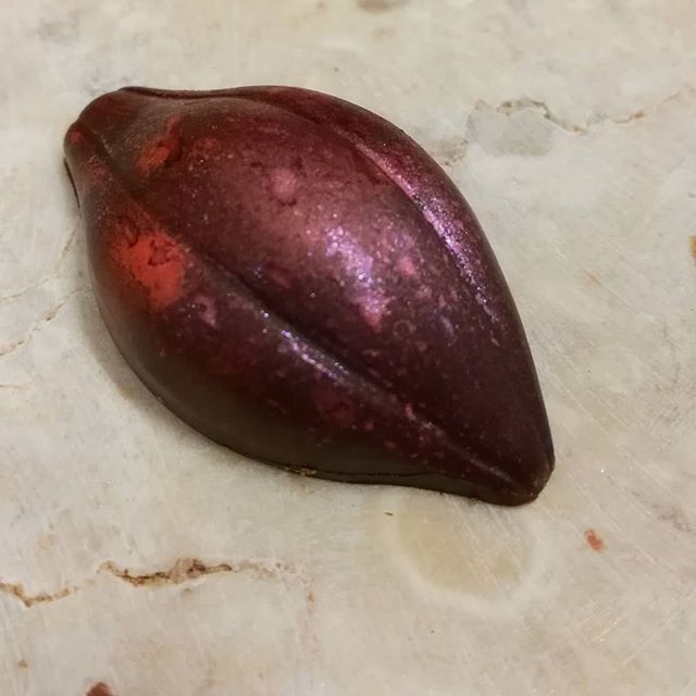 Strawberries in Winter March 8, 2018March 8, 2018What's In My Box BERRIED UNDER SNOW – strawberry ganache folded onto rose marshmallow. Sweet and fragrant against a very dark Mesoamerican shell.
