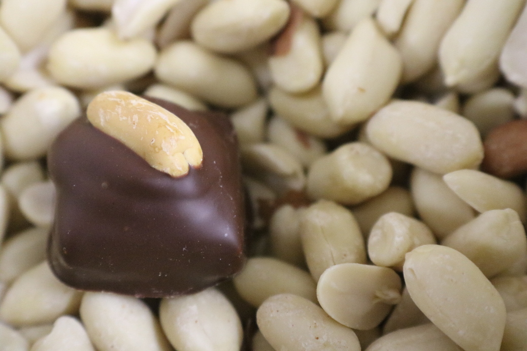 Velvety vanilla caramel rests atop soft chocolate nougat both enrobed in Kenshi 70% dark milk chocolate and garnished with a roasted peanut.