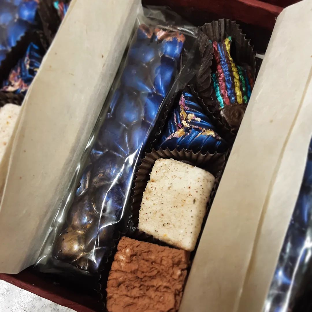 - Painted dark chocolate fish;