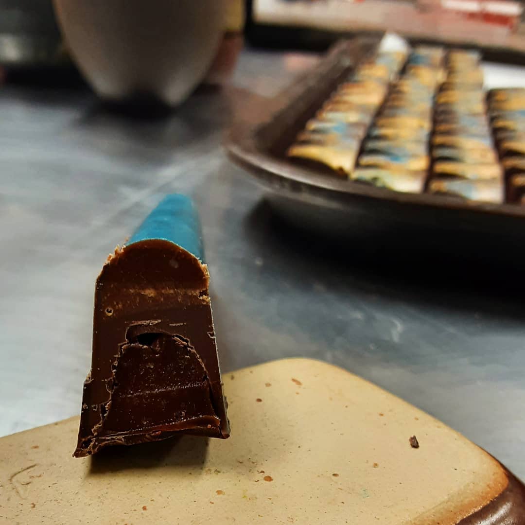 BRAND NEW INK: a layer of cacao nib praliné over a dark milk shell filled with dark chocolate cloud caramel and a hint of Himalayan salt.