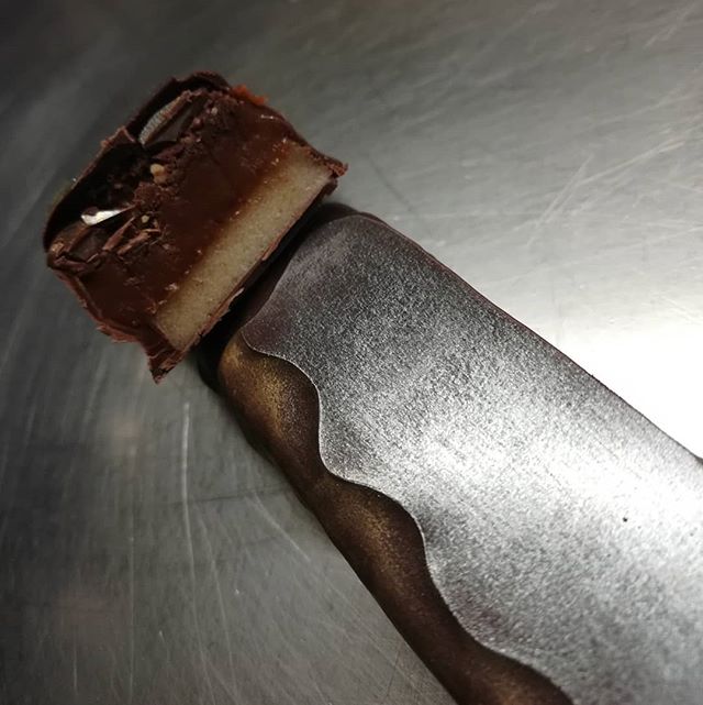 Candy Bar October 31, 2019October 31, 2019What's In My Box A little EDGE – chocolate pecan layered over maple ghost caramel (not particularly spicy) layered over Citron marshmallow. #chocolatier #candybar Buy Boxes Buy Bars Buy Gifts Classes