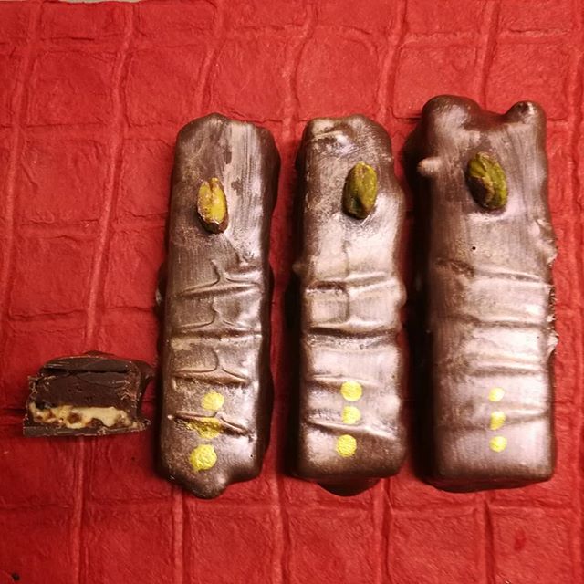 Nougat with Pistachios and Cumin May 23, 2019May 30, 2019What's In My Box CANDY BAR “Flowers in Uzbekistan” – violet black tea ganache above pistachio & Uzbek wild black cumin ganache. These are ridiculously good.