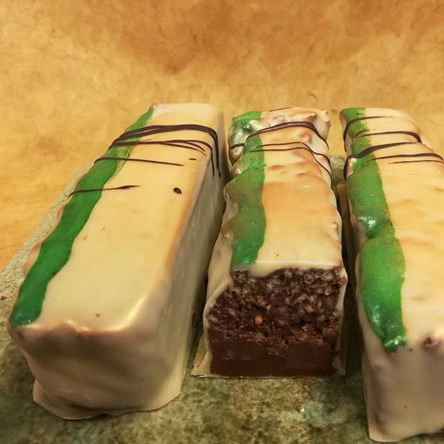 Candy Bar: Gianduja Crunch May 16, 2019May 16, 2019What's In My Box CANDY BAR “Yo Eileen, how’s this?” – Quinoa crunch over caramel over walnut & Hacienda Rio Dulce Guatemalan dark chocolate gianduja. (Saved one for you)
