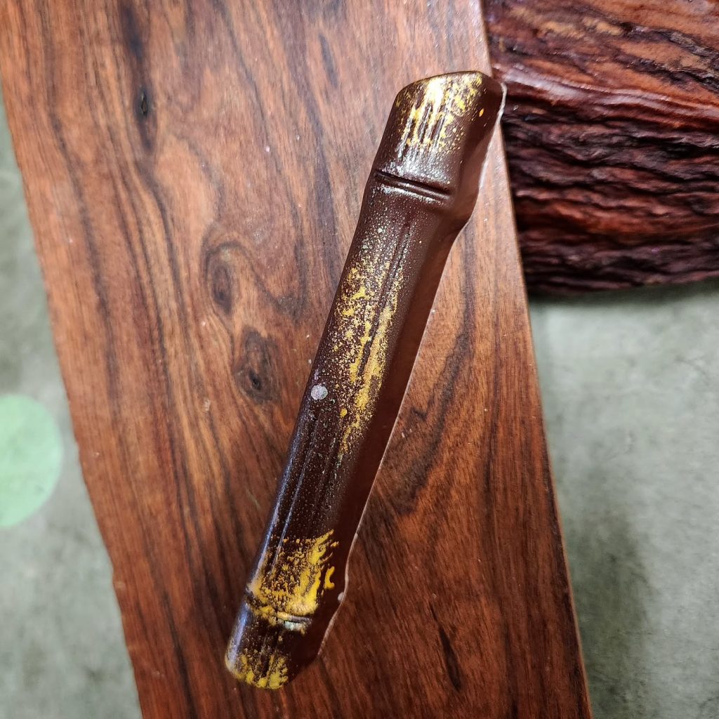 Caramelized Banana Bamboo February 21, 2025February 21, 2025What's In My Box Banamboo Shoot • Caramelized Banana GanacheChocolates: Mexico White 38%, Vietnam Ben Tre 70% dark#bonbon #chocolate #chocolatier #bananaA panda walks into a banana treeChompPanda walks into another tree.