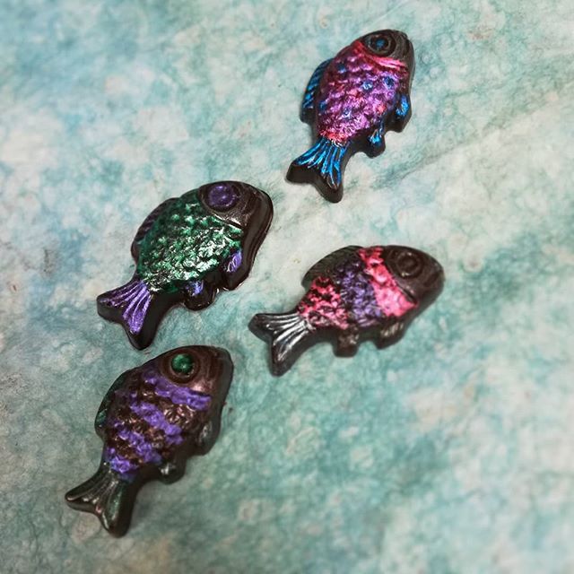 Handpainted Puerto Rican Fish January 30, 2019January 30, 2019What's In My Box Chef Angelina painted this batch of Puerto Rican 80% dark chocolate fish. Awaiting more chocolate from Eduardo of Forteza Chocolate in San Juan.