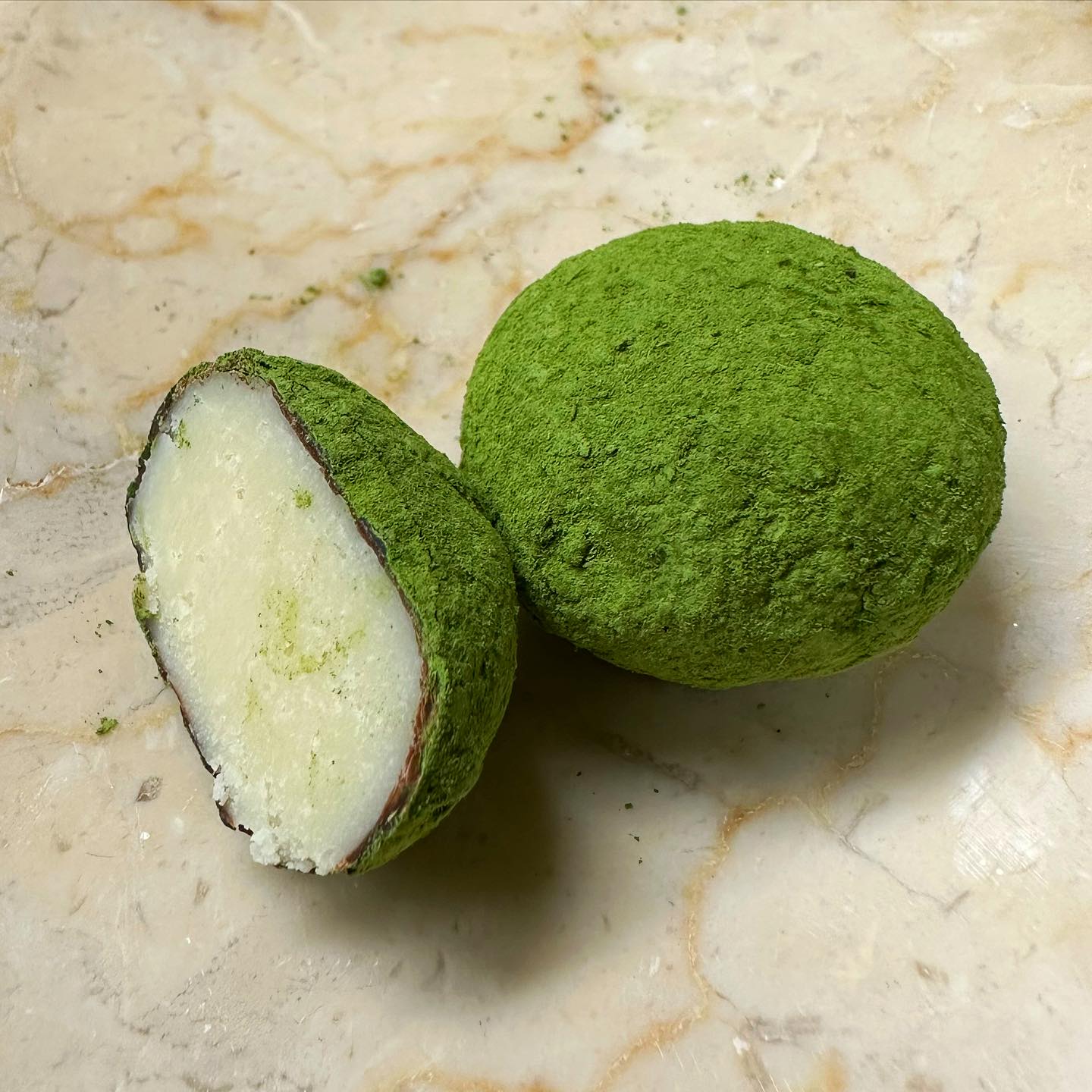 CRAVING A DREAM ~ French lavender in creamy Mexico white chocolate ganache enrobed in Ghana dark and dusted in Croatian lavender and matcha tea