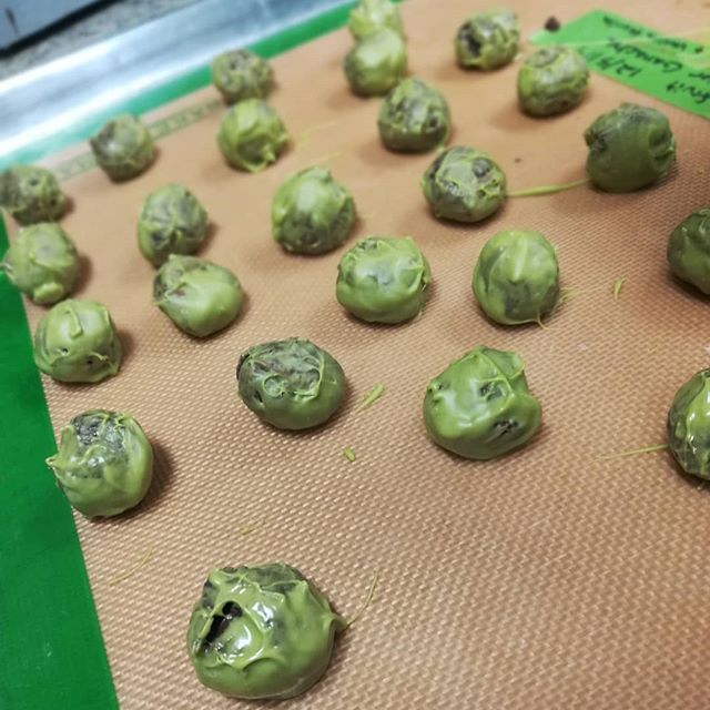 CROSS POLLINATION – Truffle of jackfruit ganache with El Salvador 80 percent dark chocolate enrobed in intese Matcha-Yuzu couverture