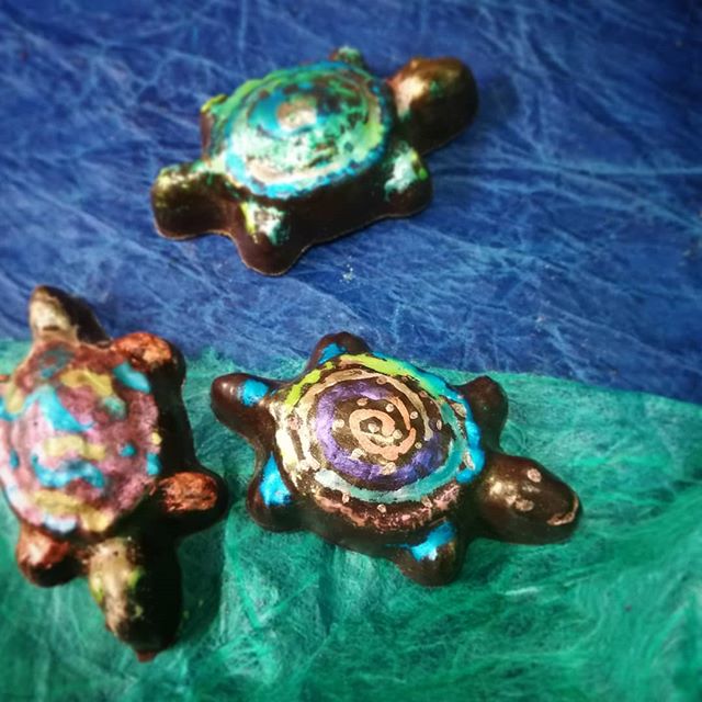 Caramel Pecan Turtles May 30, 2019May 30, 2019What's In My Box Endangered TURTLES – pecan praliné and butter caramel in Hacienda Rio Dulce Guatemalan single-farm dark chocolate. These guys are about 2″ (5cm) from smile to tail. What do y’all think of Angelina’s paint job?