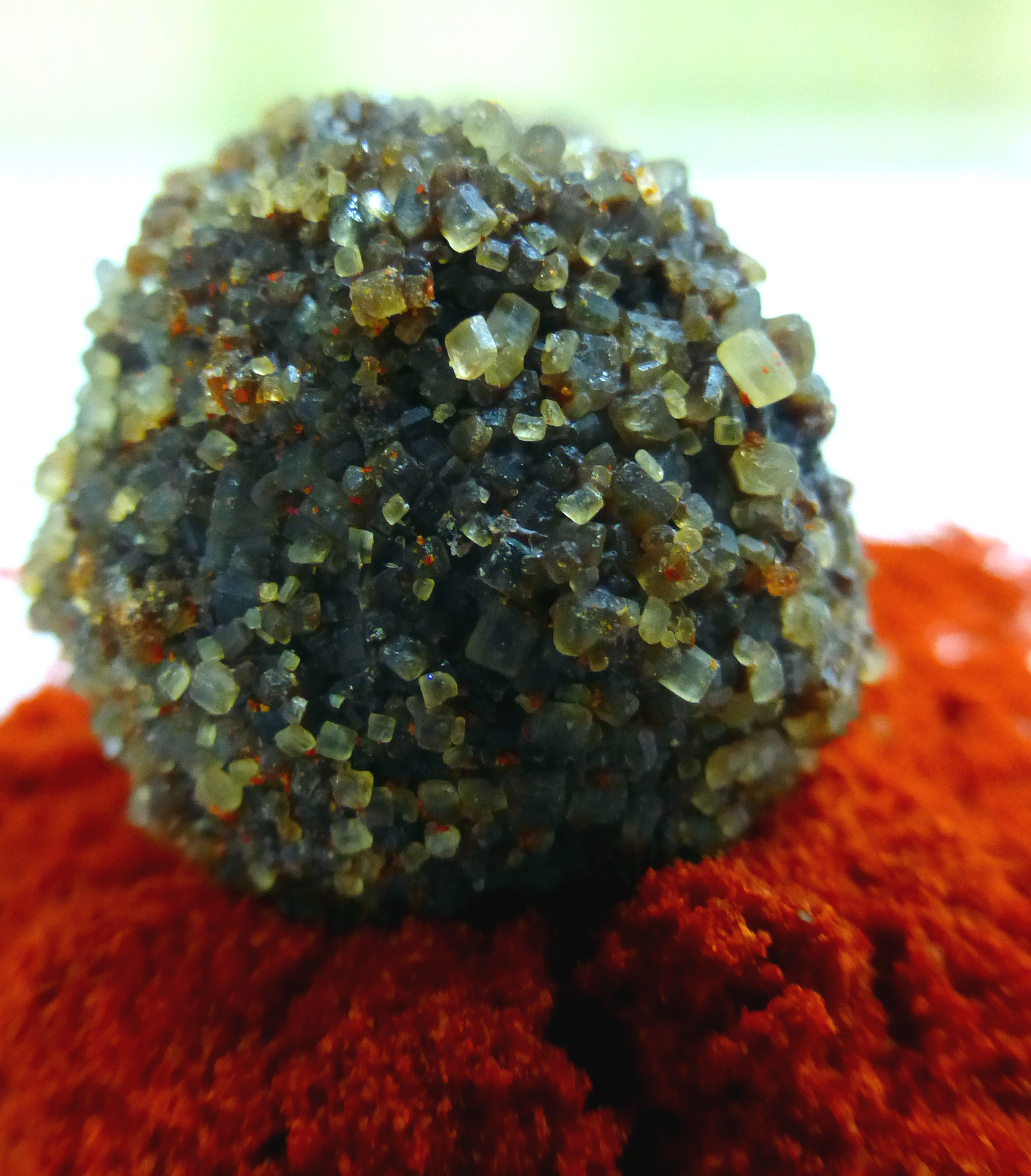Spanish smoked paprika caramel truffle with “Cru Sauvage” wild Bolivian chocolate finished in coarse sugar and Cayman sea salt.