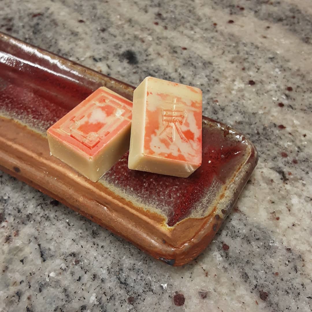 Calamonda Cranberry September 15, 2020September 16, 2020What's In My Box FAIR GAME – Rich’s sister’s calamondas (tiny tart citrus) over bourbon-soaked cranberries and cast in a housemade white chocolate. #chocolatier #watercolor #freshfruit Buy Boxes Buy Bars Buy Gifts Classes