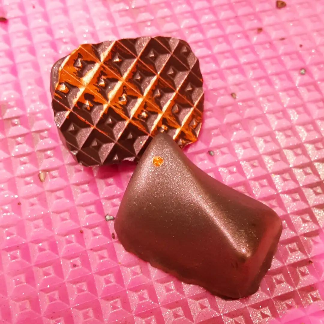 FALL APPROACHES: Cherry vanilla cloud caramel in a double layer shell of dark and dark milk chocolates.
