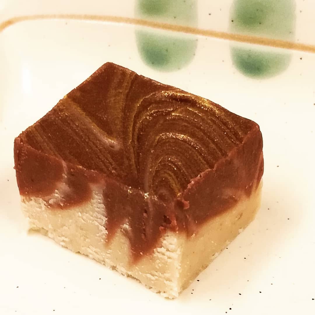 FAR FROM FIRENZE – tart walnut gianduja in milk and white chocolates.