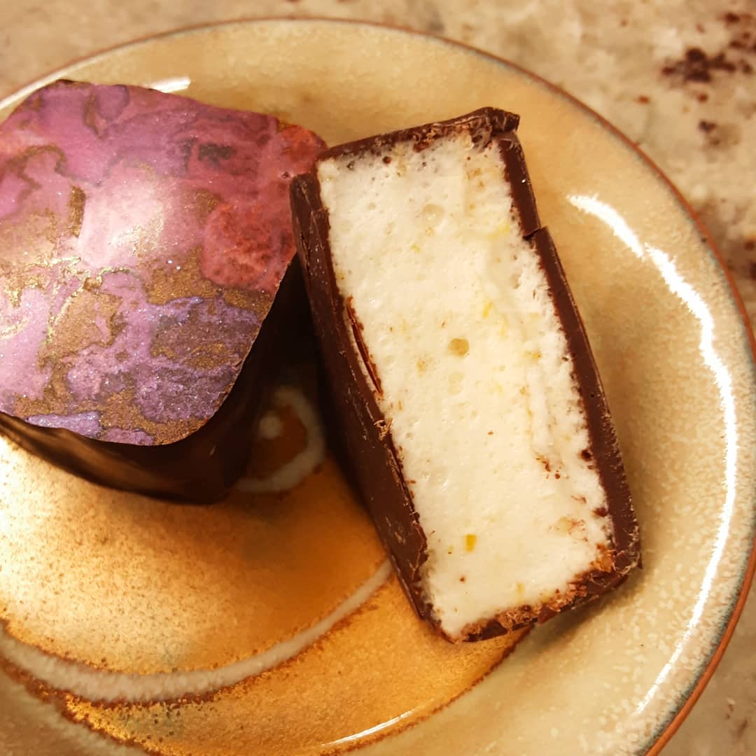 FOCUSED ON TEXTURE: Persimmon cinnamon marshmallow in fruity dark chocolate