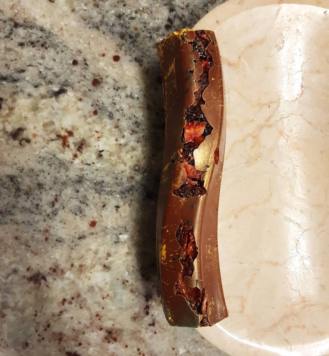Peach, Strawberry, Black Sesame September 20, 2020September 21, 2020What's In My Box FRACTURED FAIRY TALE – Vanilla peach mascarpone ganache; housemade Brazilian milk chocolate resplendent in strawberries and black sesame. A hint of burn. #chocolatier #moose #squirrel Buy Boxes Buy Bars Buy Gifts Classes