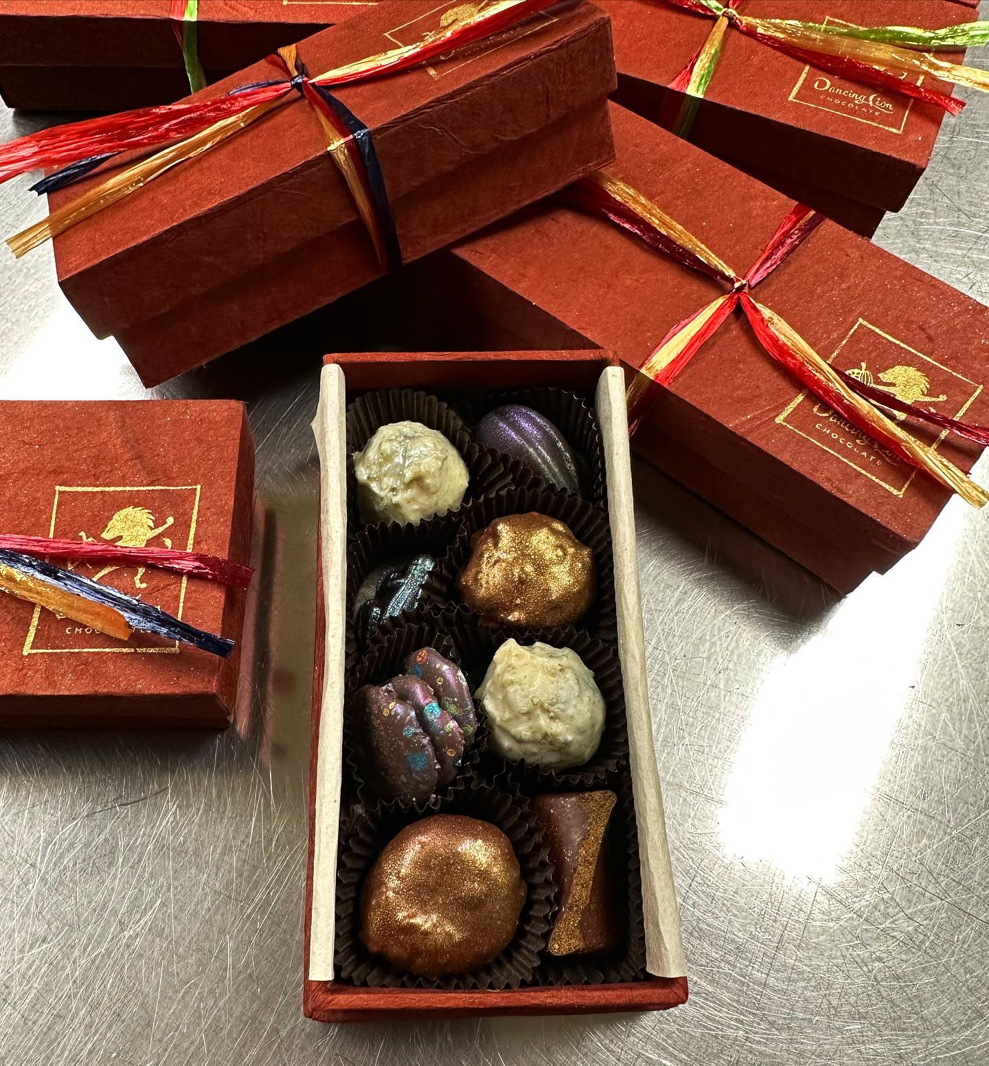 Frogs & Truffles September 21, 2023September 22, 2023What's In My Box FROG & TRUFFLES ~ Medium bonbon boxes filled with fresh raspberry, mango, golden kiwi, and walnut gianduja #beantobonbon #chocolatier #chocolateasart #truffles