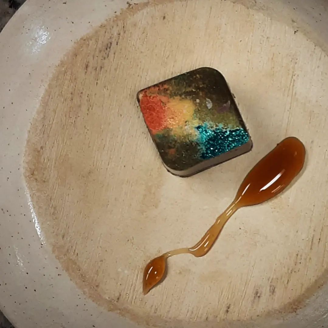 IN ABSENTIA, DELECTIS – Local carrots simmered in Phil’s Maple syrup as an oat milk ganache with Ghana dark and Peru Piura dark milk chocolates.