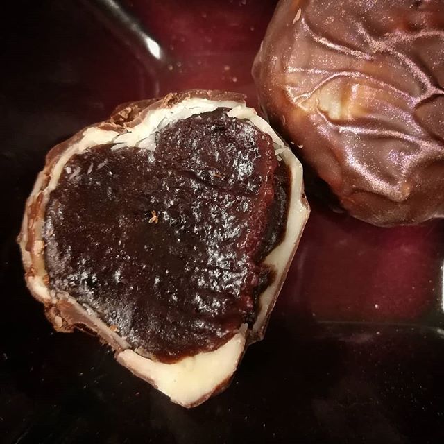 Blackberry Jam Caramel January 30, 2019January 30, 2019What's In My Box INSIDE JOB – blackberry caramel in Ivoire white and Turtle milk chocolates.Shop Online
