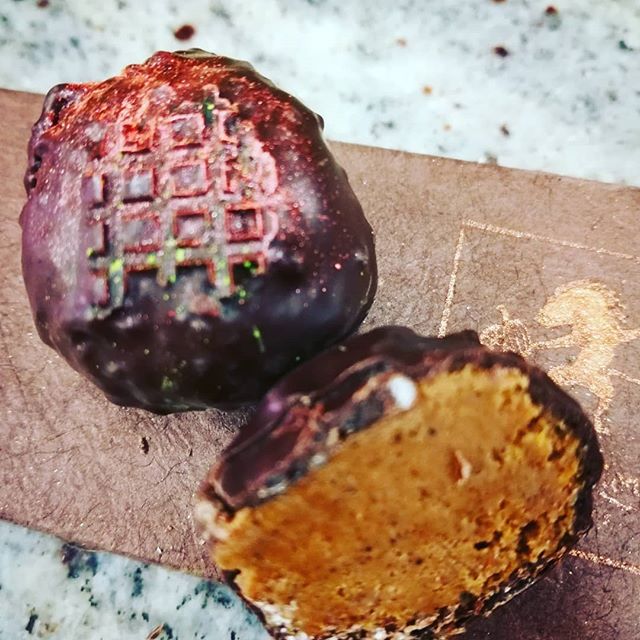 Flavor and Texture September 6, 2018September 6, 2018What's In My Box IS WHAT IT IS – Matcha blood orange cashew praliné truffle with an extra-crunchy shell.