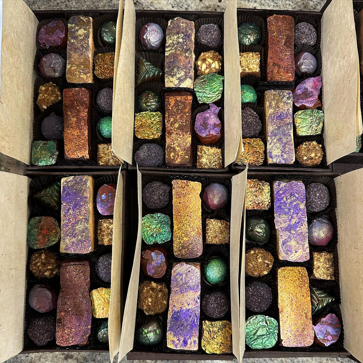 Large Truffle Boxes June 3, 2023June 3, 2023What's In My Box LARGE TRUFFLE BOXES ~ Including peach marshmallow and pecan cashew milk chocolate praliné candy bars. #chocolatier #beantobonbon #candybar #chocolateasart