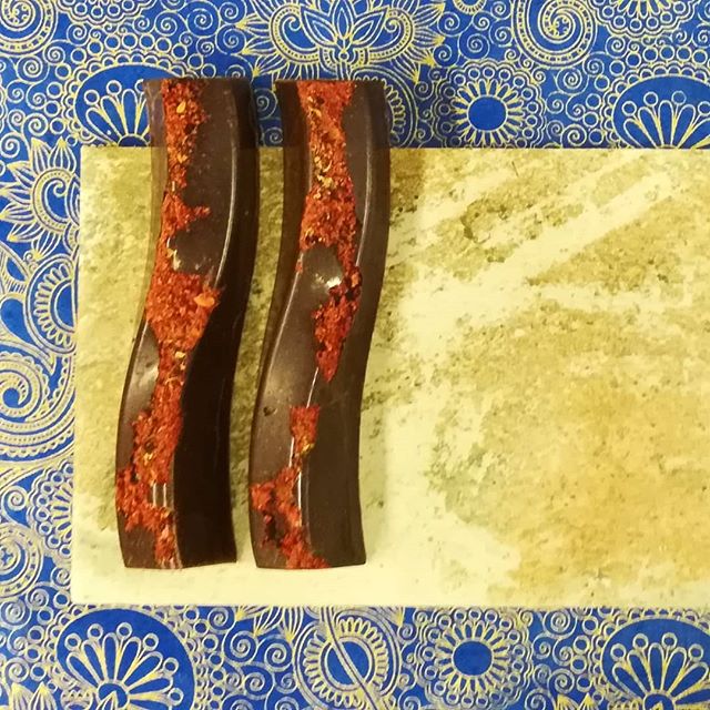 Twisted November 15, 2018November 15, 2018What's In My Box MAKING ASSUMPTIONS – strawberry dust over butter caramel and Puerto Rican dark chocolate ganache. Cast in I’x Jaguar Guatemalan dark chocolate.