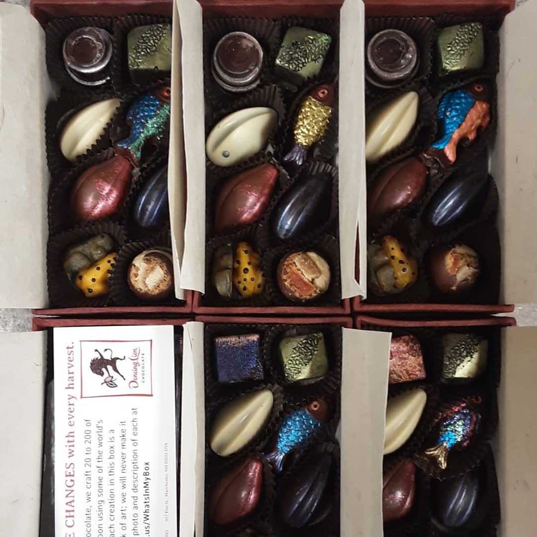 Bonbon Sharing Boxes September 9, 2020September 9, 2020What's In My Box Making BONBON SHARING BOXES for the shop.Been shipping a few.The painted fish are our housemade Brazilian Catongo dark chocolate. #chocolatier #life #boxofchocolates Buy Boxes Buy Bars Buy Gifts Classes