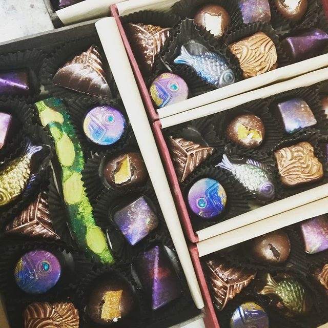 Gifts September 27, 2018September 28, 2018What's In My Box Making BONBON SHARING BOXES. The textured squares are Nutmeg Caramels in Puerto Rican 80% dark chocolate, and the green bar is Matcha Almond.