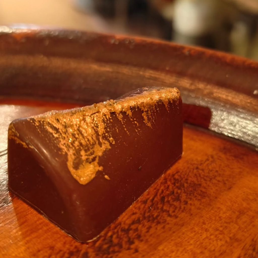 STANDING IN PLACE – Phil’s Maple Syrup cloud caramel with Belize BFREE Pure Criollo Heirloom milk chocolate and Korean flaked salt. A splash of Xocolco vanilla and maple bourbon rounds it out.
