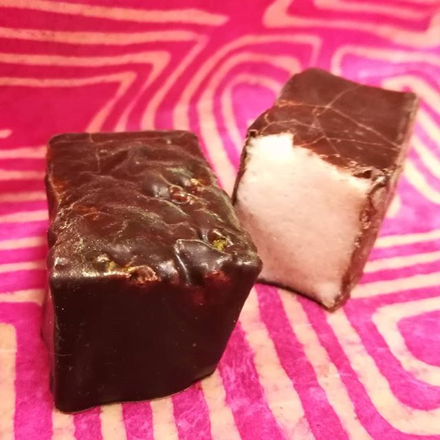 Marshmallow March 19, 2019March 19, 2019What's In My Box MATCHA MARSHMETAPHORES – a lengthy name to be sure. Strawberry Cara Cara marshmallow dusted with matcha and enrobed in a paper-thin shell of Nyangbo 68% Ghana dark chocolate.