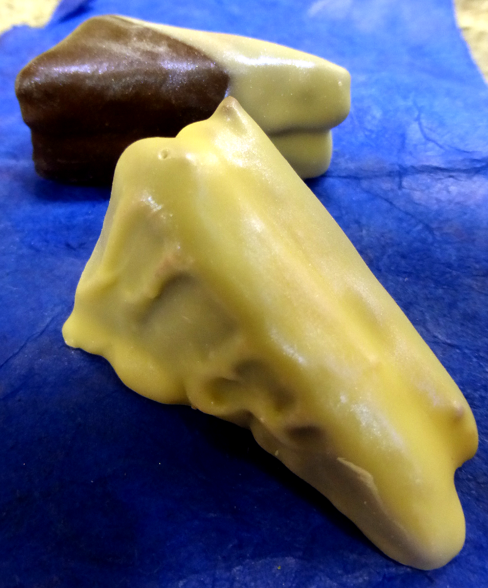 Dark Ecuador chocolate citrus ganache wrapped with delicate marshmallow and enrobed in Ecuador dark and Ivoire or just Ivoire chocolate.