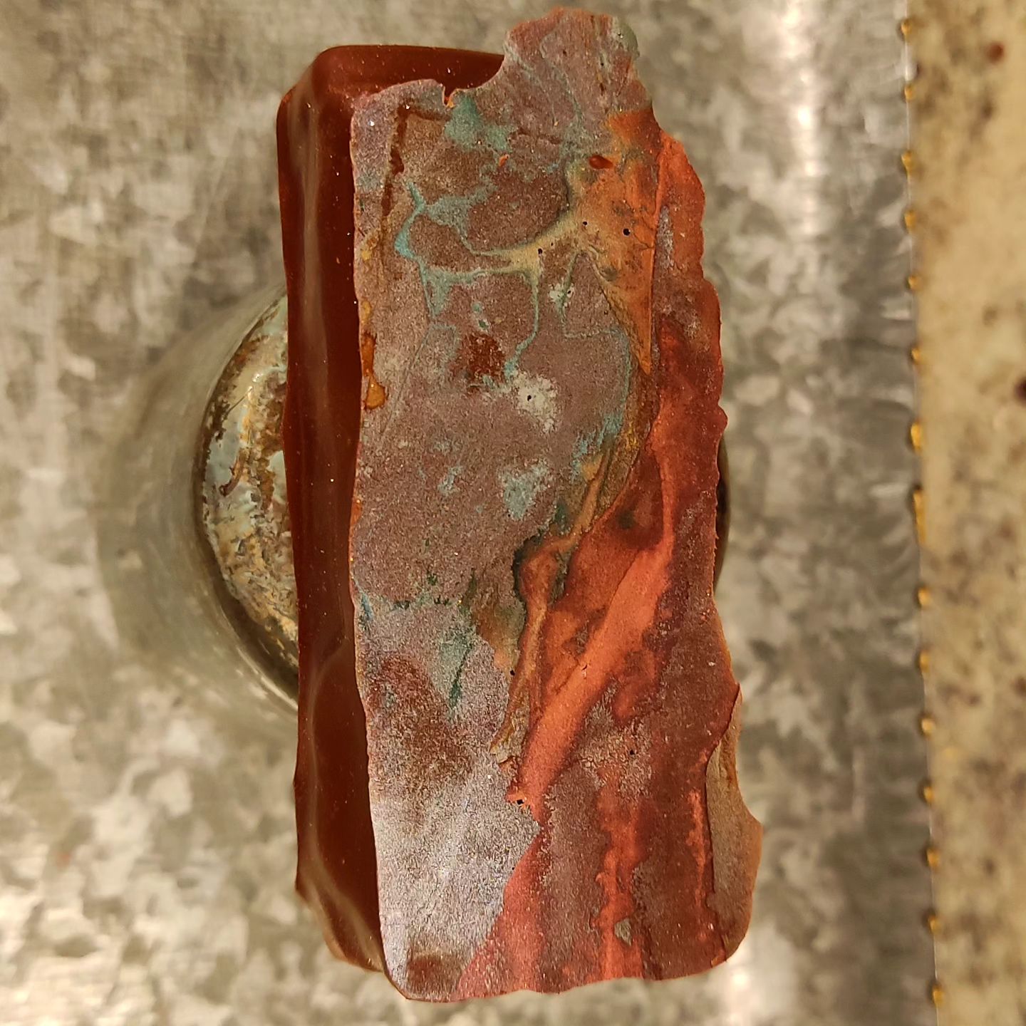 Neptune Hills • A candy bar of mango paté de fruit over cashew gianduja, with a thin layer of juniper marshmallow. Hand-dipped in Belize Pure Criollo Heirloom dark chocolate.