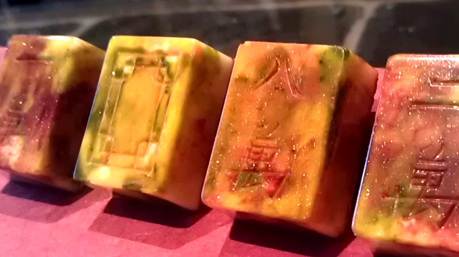 A shimmering tile of Thai Basil and Calamonda finished in Ivoire white chocolate.
