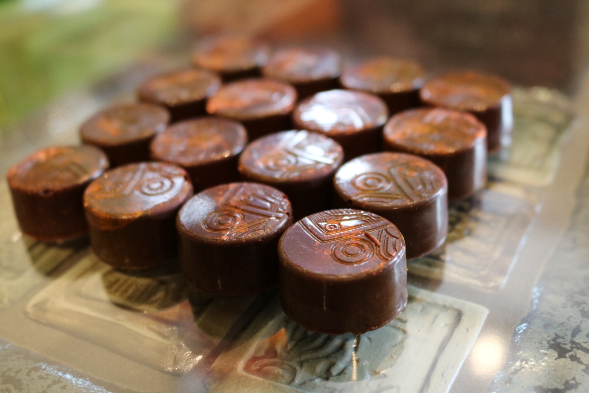 Farnham Hill Hard Cider, Cider syrup, and Mack’s Macoun apples in 43% Tikal milk chocolate.