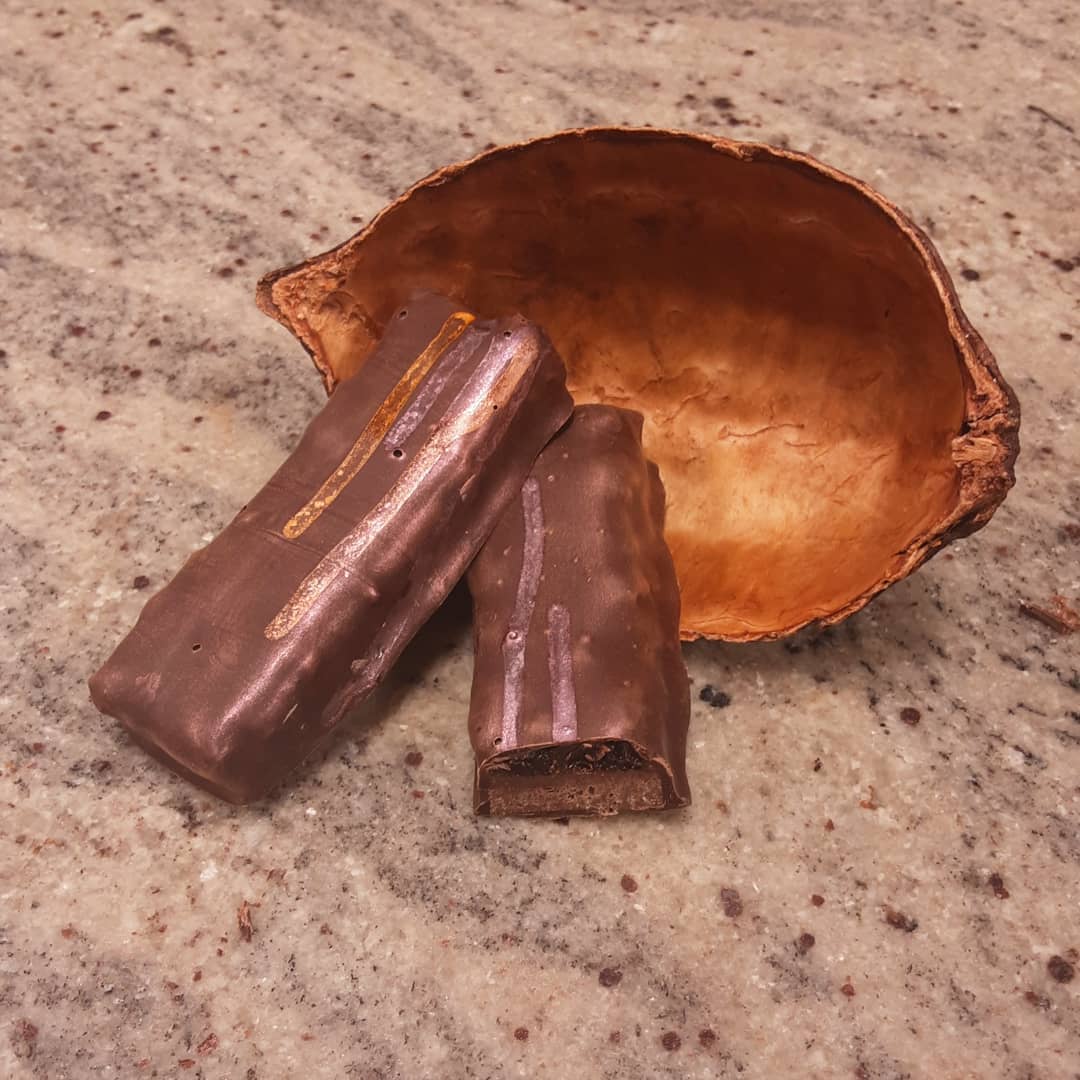 Cherry & Gianduja Candy Bar May 11, 2021May 11, 2021What's In My Box ONE FOR THE ROAD: Cherry compote over cashew gianduja enrobed in Dominican Republic dark chocolate #chocolatier #candybar