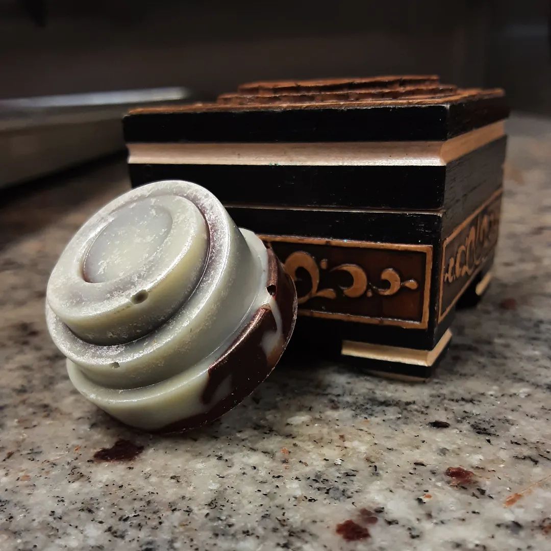ORNATE BOXES: a double layer shell of yuzu and Ecuador dark with brown sugar paprika chile cloud caramel
