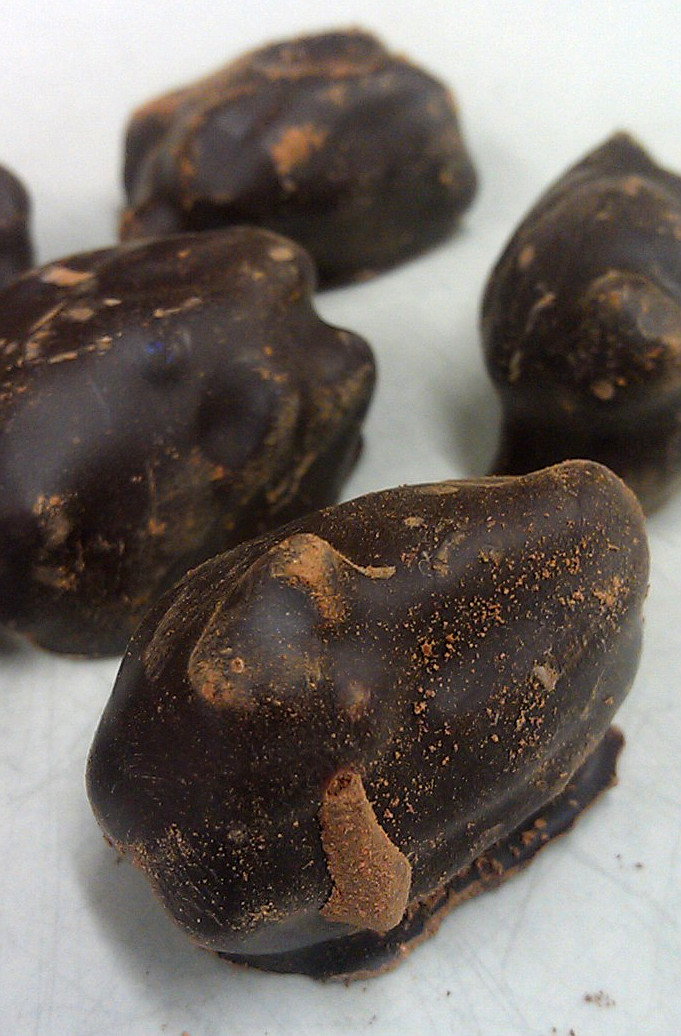 Toasted pecan halves sandwiched around a dollop of habanero caramel, dipped in dark Ghana chocolate, and dusted with cayenne.