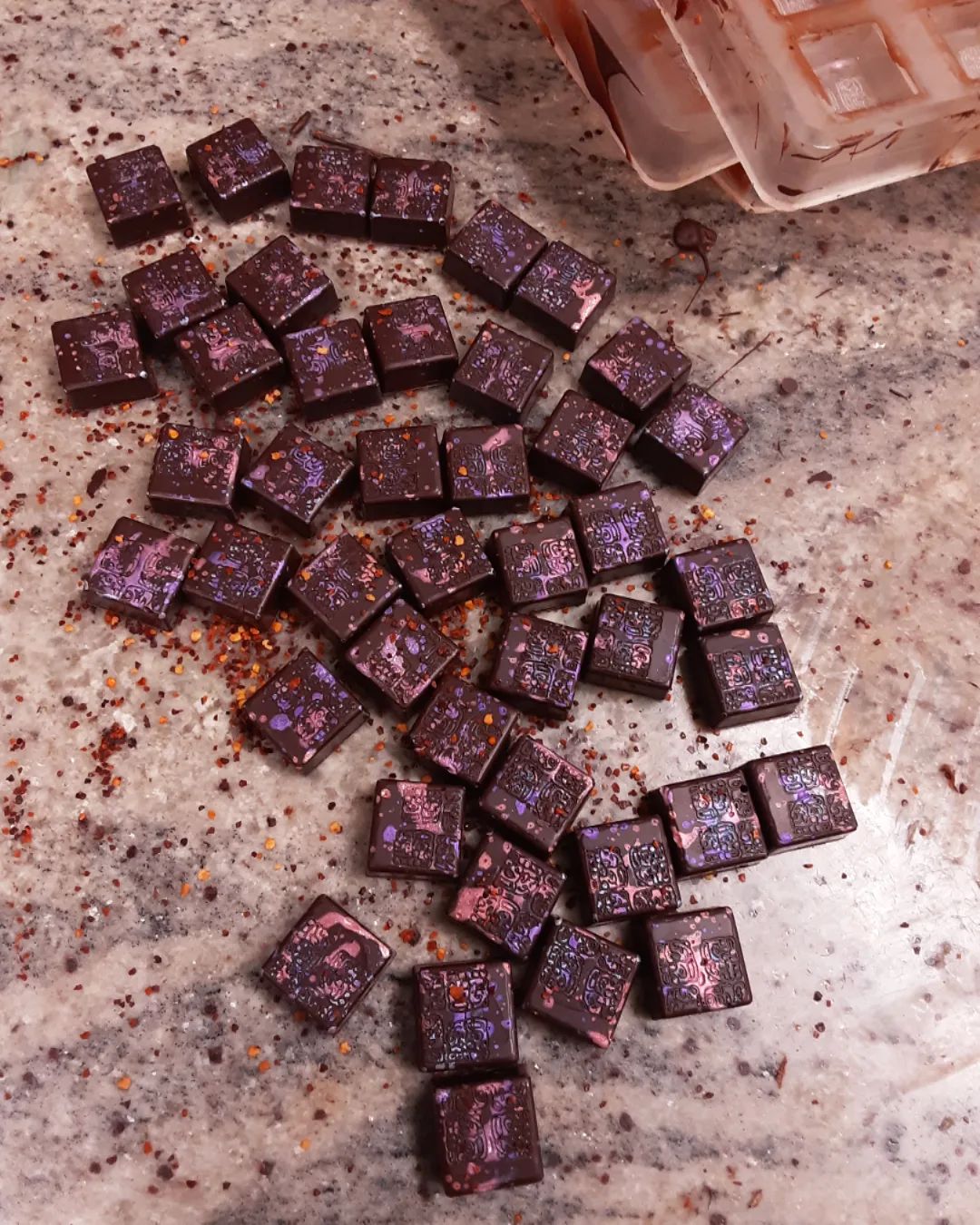 Spanish Smoked Paprika and Chile Flakes May 27, 2022May 27, 2022What's In My Box PERFECT PATHS: smoky paprika and chile spiced brown sugar cloud caramel in a fudgy Ghana shell A scattering of bonbons interspersed with chile flakes creates perfection Shop for Chocolate