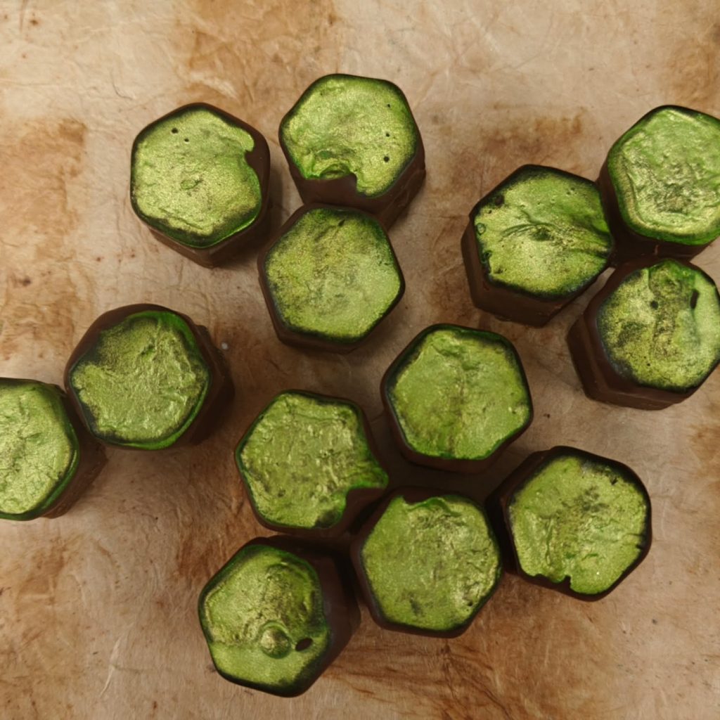 CHLOROPLASTS – Pistachio praline with Mexico Soconusco 70% dark chocolate.