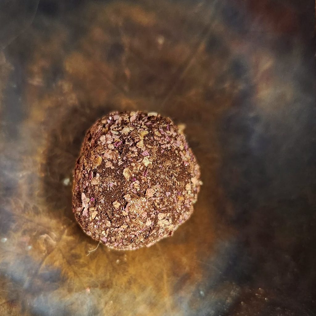 Dehydrated • Plum and rose ganache with rose petals and cocoa powder