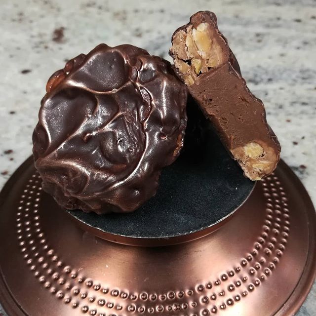 Macadamia Gianduja & Cranberry Nougat November 13, 2019November 13, 2019What's In My Box PSST. HEY, MAC – a donut pistachio cranberry nougat wrapped around macadamia gianduja and enrobed in Liona Dominican Republic dark chocolate. #chocolatier #chocolateasart #macadamianuts #gianduja #handenrobed Buy Boxes Buy Bars Buy Gifts Classes